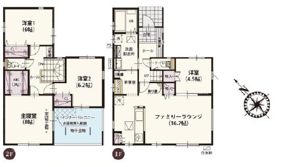 【外観】〇4号棟【4LDK+WIC+カースペース2台】 水回り集中家事動線♪家事室を設け、お料理と洗濯を同時にできる家事ラク動線を実現しました♪ぜひ現地にて物件の良さをご体感くださいませ!